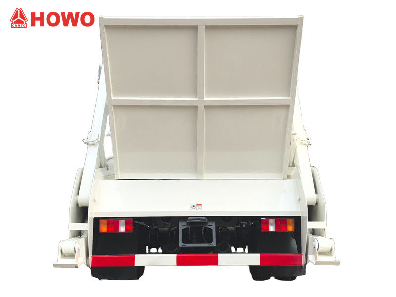 Сміттєвоз HOWO з поворотним важелем модифікований на базі шасі HOWO 4x2 RHD, з колісною базою 4500 мм, оснащений дизельним двигуном Cummins ISF3.8S3154 потужністю 154 к.с., 6-ступінчастою механічною коробкою передач, системою поворотного важеля з високоміцної сталі, гідравлічним пристроєм керування та електричним блоком керування (опціонально). Усі фарбування та логотипи залежать від вимог.