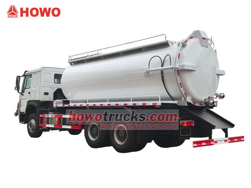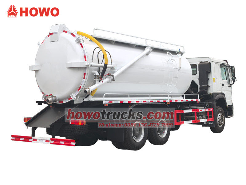 Вакуумний відсмоктувач HOWO 15 куб. м. базується на шасі HOWO 6x4, оснащений дизельним двигуном WP10.340E22 потужністю 340 к.с. та коробкою передач HW19710, що є потужним та простим в експлуатації. Транспортний засіб оснащений вакуумним баком об'ємом 15 куб. м, який може задовольнити різні потреби днопоглиблення, такі як міська каналізація та промислові трубопроводи.