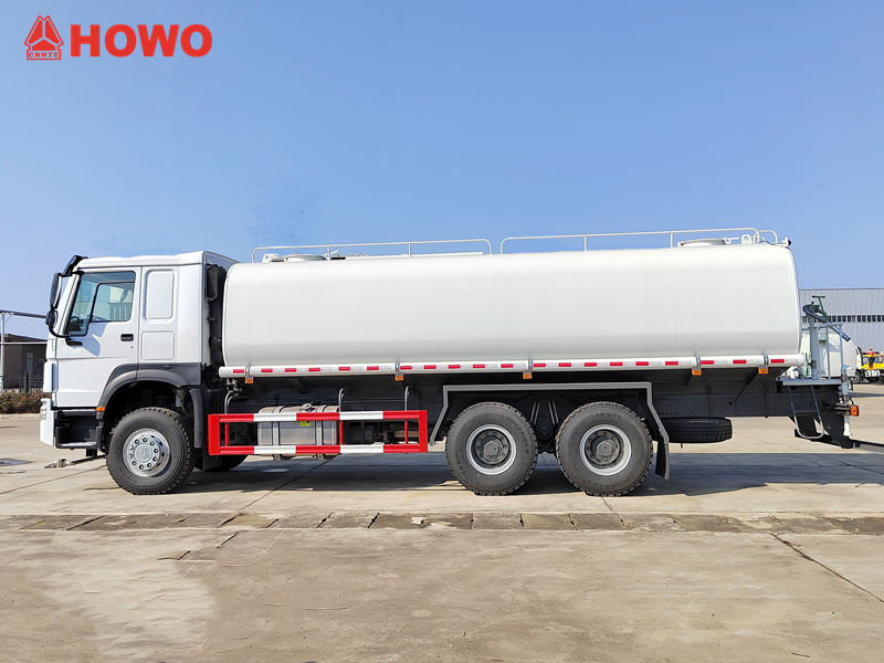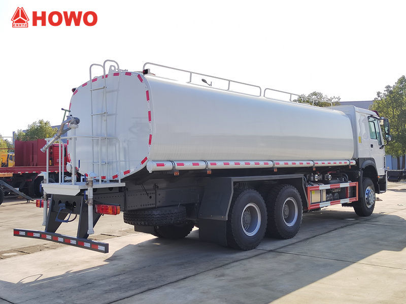 Автоцистерна HOWO об'ємом 15 кубічних метрів не тільки потужно змиває дорожній пил та пісок за допомогою переднього промивного механізму, але й рівномірно розподіляє водяний туман за допомогою заднього зрошувального механізму, зменшуючи пил та зволожуючи дороги.