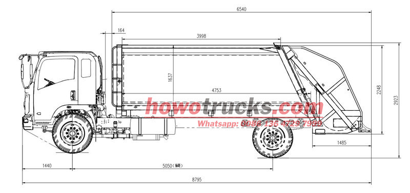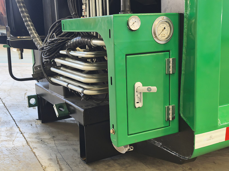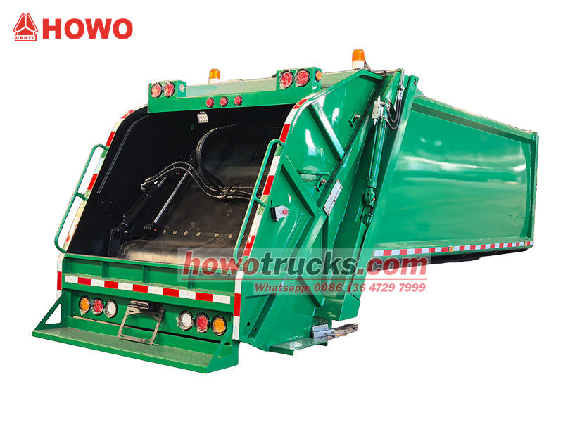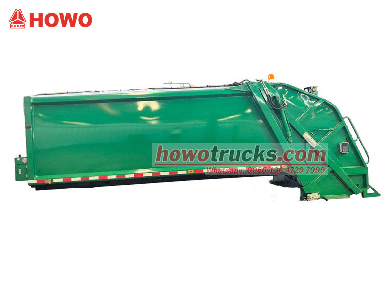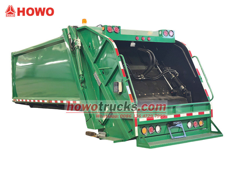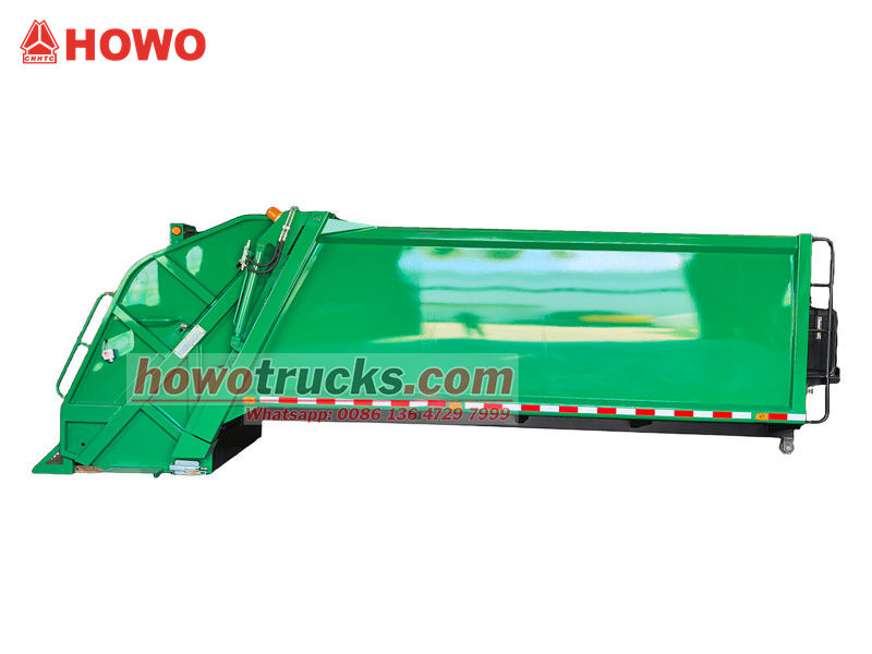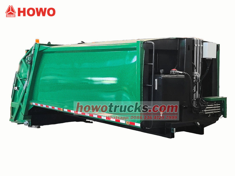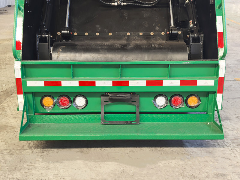 Кузов ущільнювача об'ємом 10 кубічних метрів із заднім завантаженням є основною операційною системою транспортного засобу, що складається в основному з герметичного відсіку для сміття, компресійного штовхача та механізму завантаження. Міцна та довговічна конструкція, а також чудове ущільнення запобігають витоку стічних вод та витоку запахів. Під час роботи, після того, як завантажувальний бункер отримує сміття, гідравлічно приводний скрепер зішкрібає його в відсік. Потім компресійний штовхач застосовує тиск, ущільнюючи сміття, зменшуючи його об'єм та збільшуючи вантажопідйомність. Верхня вантажопідйомність становить 12 кубічних метрів і підтримує різні методи завантаження та розвантаження для задоволення різноманітних експлуатаційних потреб.