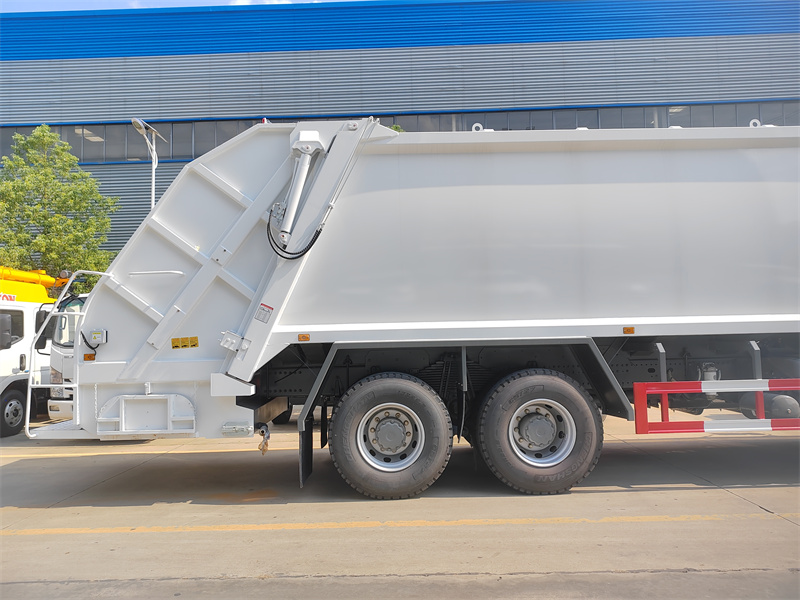 18000(2 axles)The22 куб. м. сміттєущільнювач Howo Trucks – це високоефективний транспортний засіб для утилізації відходів, спеціально розроблений для міської санітарії. Оснащений потужним двигуном Weichai потужністю 340 кінських сил та 10-ступінчастою коробкою передач Sinotruk, він може похвалитися значною потужністю. Його надбудова має вигнутий бак з вуглецевої сталі об'ємом 22 кубічні метри, спеціально оброблений для запобігання корозії та іржі, що забезпечує його довговічність та міцність, задовольняючи потреби великомасштабного збору та транспортування відходів. Транспортний засіб оснащений передовими системами стиснення та завантаження-розвантаження, що дозволяє швидко завантажувати та стискати сміття, значно збільшуючи пропускну здатність транспортування за один рейс. Крім того, він оснащений інтелектуальною електронною системою керування CAN-BUS, ручною гідравлічною системою керування, підтримкою багатопозиційного керування та функціями безпеки, такими як екстрене гальмування та електричні блокування, що забезпечує безпечну та ефективну роботу. Це цінне доповнення до сучасного міського збору та транспортування відходів.