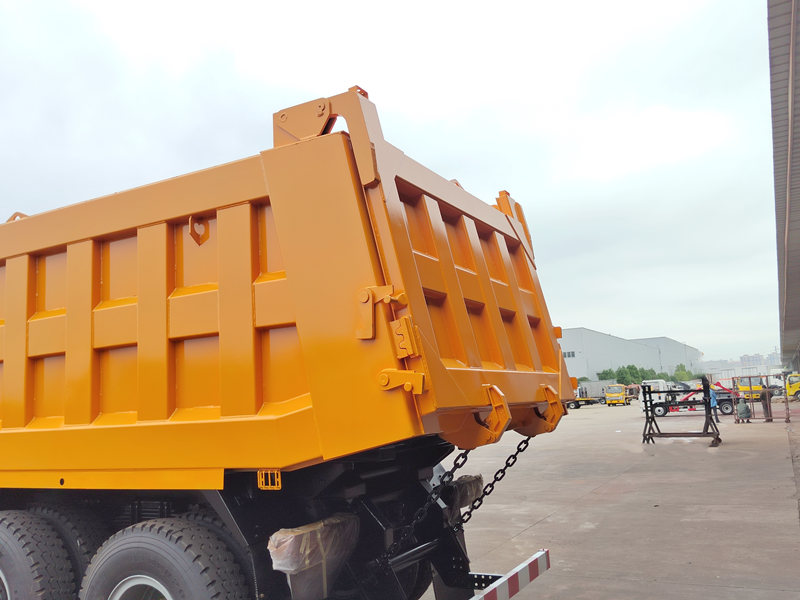 Кузов вантажівки піднімається гідравлічно, що дозволяє швидко вивантажувати матеріал, що знаходиться всередині, у призначене місце. Цей процес не вимагає ручного керування, що значно підвищує ефективність роботи. Стабільність та потужна потужність гідравлічної системи забезпечують, що самоскид може обробляти різноманітні матеріали, включаючи важкі предмети та бруд, виконуючи розвантажувальні завдання за короткий час. Це зменшує обсяг робочої сили, необхідної для підйому, скорочує робочий цикл та підвищує загальну ефективність роботи.