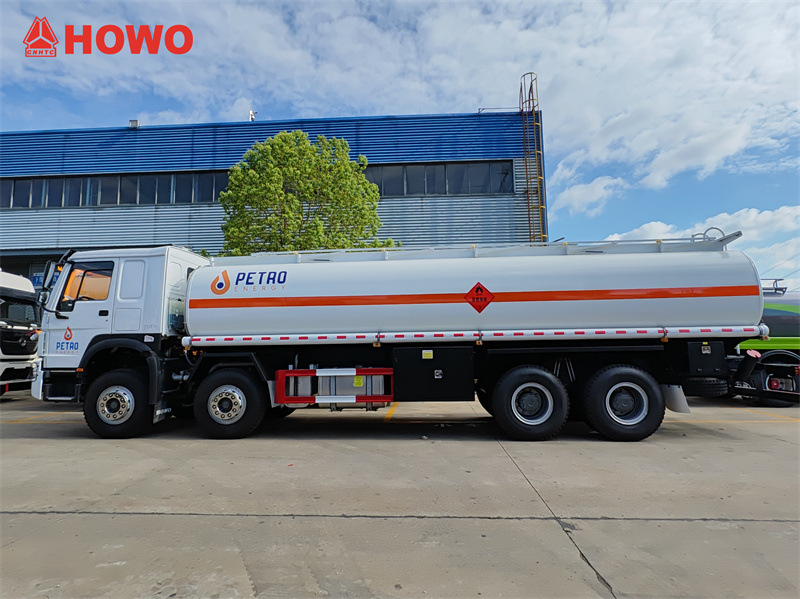 Автоцистерна для нафти Sinotruk HOWO 8x4 25 CBM, шасі з кабіною Sinotruk HW76, привід 8x4, колісна база 1800+4625+1350 мм, двигун Sinotruk WD615.47, коробка передач HW19710, верхня частина - це резервуар для нафти з вуглецевої сталі об'ємом 25 кубічних метрів, з 6 відсіками, що вміщують 3, 4, 4, 4, 5, 5 кубічних метрів відповідно, кожен з яких обладнаний люком європейського стандарту, нижнім клапаном, клапаном для розвантаження нафти, верхнім проходом, поручнем, 1 аварійним клапаном, 2 трубами для розвантаження нафти.
