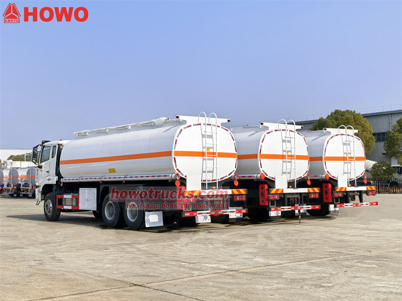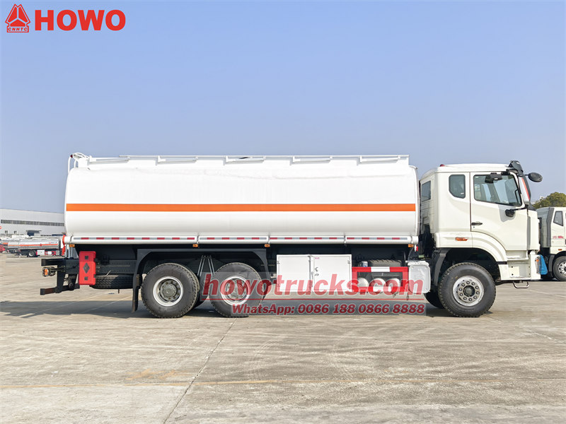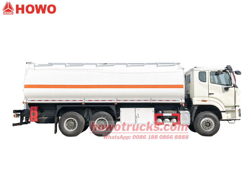 Фактичний об'єм масляного бака становить25,000 літрів. Як захисний матеріал використовується вуглецева сталь Q235. Корпус резервуара виготовлений з вуглецевої сталі товщиною не менше5мм. Паливозаправна цистерна Howo оснащена китайськимвідомийфірмові насоси, клапани та труби, а також комплект розподільників палива. Масляний бак оснащений драбиною для зручності експлуатації та може бути розділений на кілька відсіків відповідно до потреб.