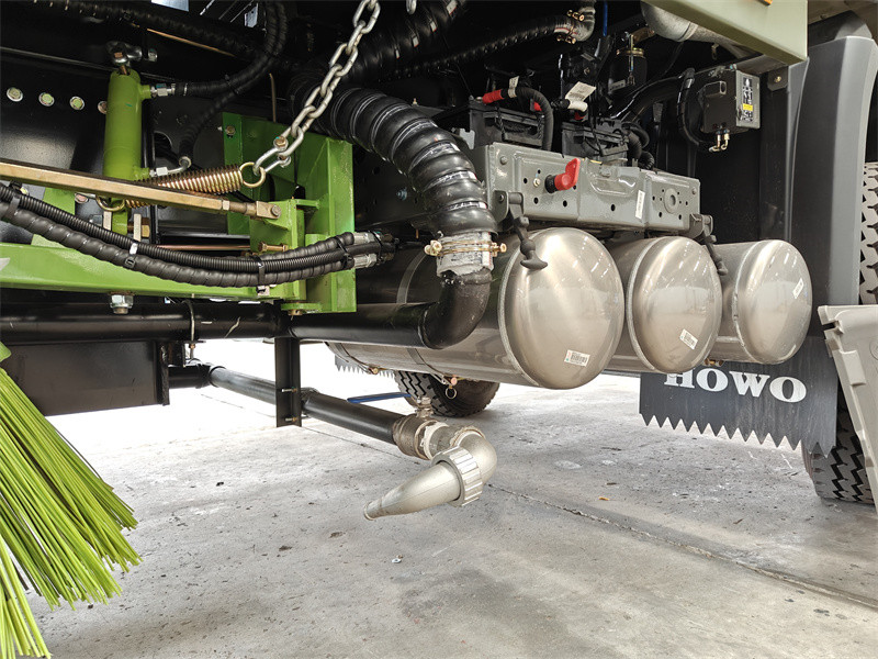 11500TheПідмітально-прибиральна машина Howo 12 куб. м, встановлена на вантажівці– це високоефективна санітарна машина, призначена для очищення та обслуговування міських доріг, площ, промислових парків та інших місць. Вона оснащена резервуаром для води з вуглецевої сталі об'ємом 4000 літрів та сміттєвим баком об'ємом 8000 літрів з нержавіючої сталі. Система підмітання включає чотири комплекти дискових щіток та широкі присоски, що забезпечує ширину підмітання до 3,5 метрів, ширину промивання під високим тиском 2,5 метра та максимальну продуктивність підмітання 60 000 м².³/год. Транспортний засіб використовує німецький насос високого тиску, водяний насос низького тиску від Hangzhou та повітродувку Weiye, що поєднується з багатоступеневим розпиленням для придушення пилу, що призводить до низького утворення пилу під час роботи.