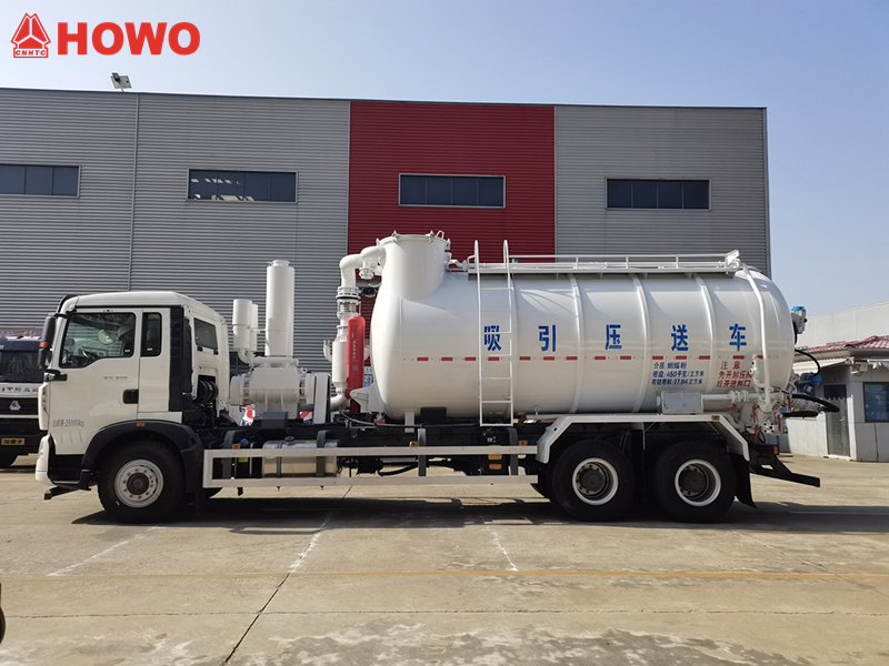 Всмоктувальні та напірні конвеєрні вантажівки HOWO мають дві основні функції: всмоктування під негативним тиском та розвантаження під позитивним тиском.
