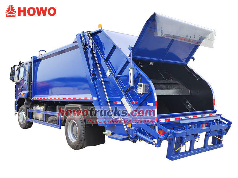 Сміттєвоз Howo 15cbm із заднім ущільненням (також називається сміттєвоз Howo 15cbm із заднім завантаженням, вантажівка для ущільнення відходів HOWO 300 к.с., вантажівка-ущільнювач сміття Howo 15cbm, сміттєвоз Howo 300 к.с., самоскид Howo із заднім завантаженням, сміттєвоз Howo 15cbm із заднім завантаженням, вантажівка-ущільнювач Howo із заднім завантаженням тощо.)це новий тип санітарного транспортного засобу, спеціально використовуваного для збору, перевезення та вивезення сміття.