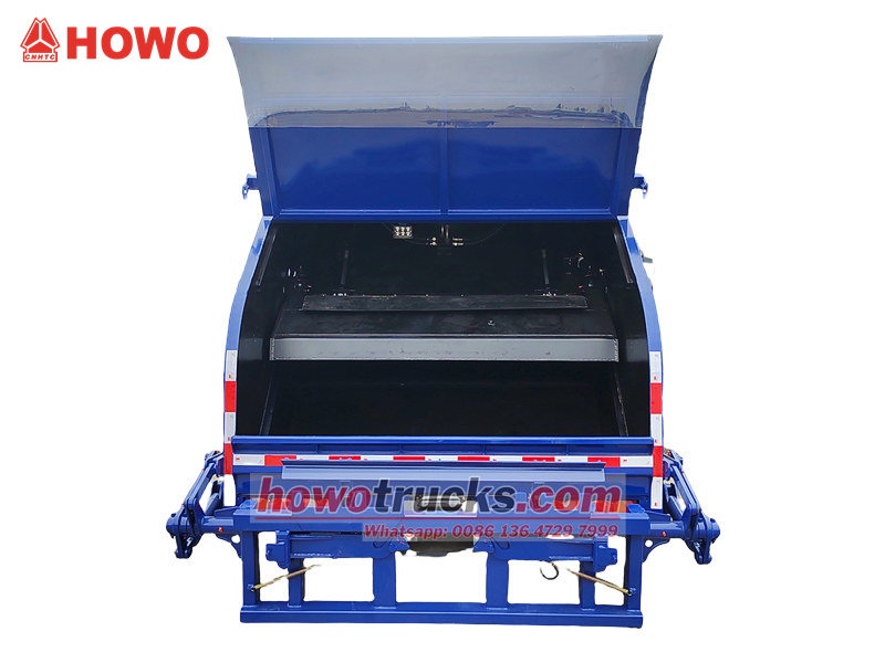Сміттєвий бак виготовлений з високоміцної атмосферостійкої сталевої пластини, з бічними панелями, виготовленими методом цільного лиття. Відсік має чудову герметичність, запобігаючи протіканню стічних вод та поширенню запахів, що робить його екологічно чистим та ефективним. Сміттєвоз Howo із заднім ущільненням підходить для централізованого збору та транспортування побутових відходів у містах, житлових районах, на заводах та в інших місцях. Він простий в експлуатації, безпечний та надійний.
