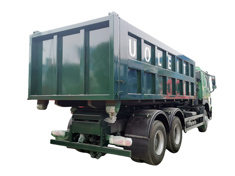 HOWO 4×4, 8×4, RHD drive is optional20-тонний сміттєвоз HOWO з гаковим навантажувачем – це важкий самозавантажувальний санітарний автомобіль, розроблений на базі шасі Sinotruk HOWO 6×4. Його основною особливістю є ефективна система керування гаком-стрілою, яка використовує гідравлічні механізми для незалежного виконання завантаження, транспортування та цільового розвантаження стандартних сміттєвих контейнерів. Це дозволяє використовувати циклічну модель транспортування «один транспортний засіб з кількома контейнерами», що значно підвищує гнучкість та ефективність збору та транспортування відходів. Транспортний засіб оснащений технологічно зрілим двигуном серії WD615 потужністю 336 кінських сил. У поєднанні з 10-ступінчастою механічною коробкою передач та 16-тонним заднім мостом він забезпечує видатну прохідність та надійність у складних дорожніх умовах та під час важких вантажних операцій.