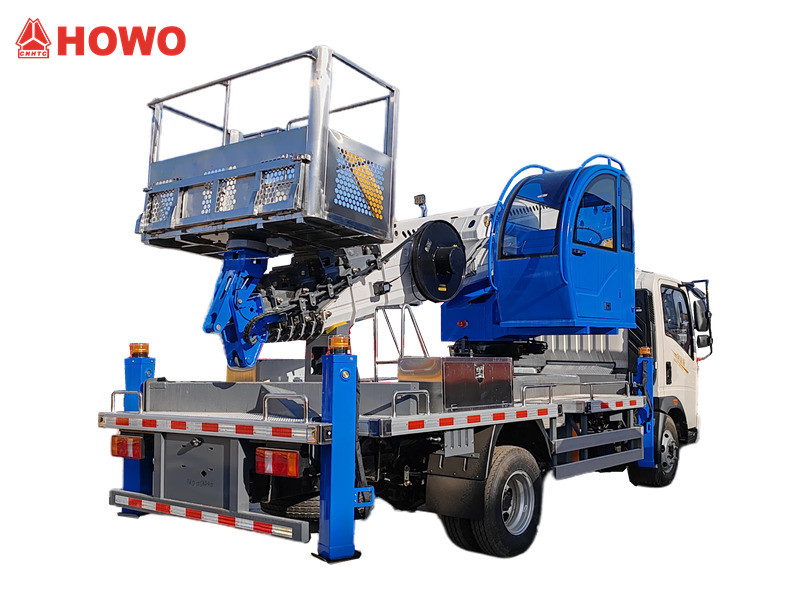З максимальною робочою висотою 28 метрів, транспортний засіб оснащений п'ятисекційною синхронізованою телескопічною стрілою та чотирма V-подібними гідравлічними аутригерами, що забезпечують розмах стійок 4200 мм для чудової стійкості під час роботи. Платформа з нержавіючої сталі має вантажопідйомність 200 кг, підтримує безперервне обертання на 360° та дозволяє працювати в двох напрямках. Вона оснащена трьома системами керування (наземною, платформною та бездротовим пультом дистанційного керування) та аварійними захисними пристроями. Відомий своєю високою ефективністю та гнучкістю в експлуатації, цей Вантажівка HOWO широко використовується в муніципальному обслуговуванні, інспекції ліній електропередач, встановленні реклами та інших висотних операціях, поєднуючи безпеку з універсальністю.