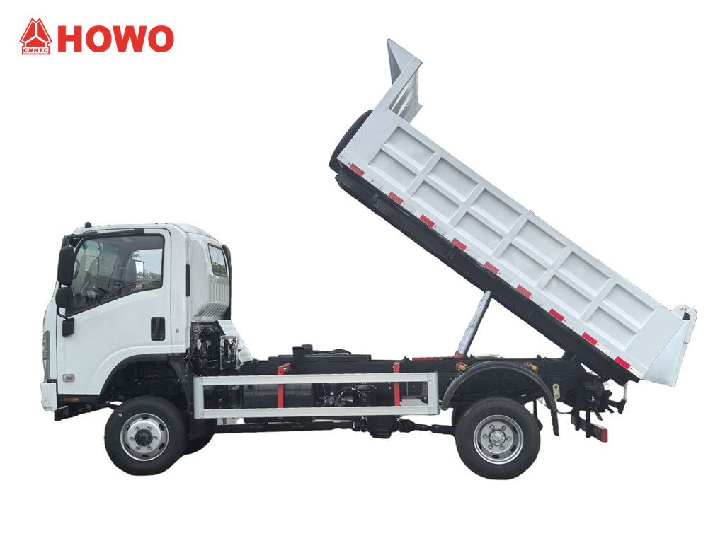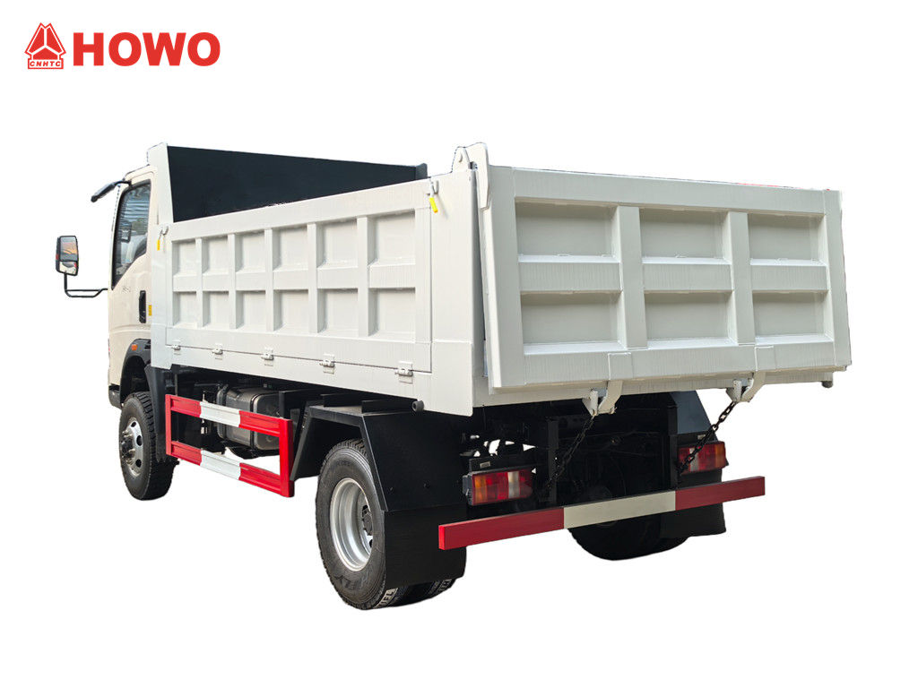 Міні-самоскид Howo 3 Ton позашляхової техніки модифікований на базі шасі легкої вантажівки HOWO 4x4 RHD, з колісною базою 3360 мм, оснащений дизельним двигуном YN4102QBZL потужністю 116 к.с., 6-ступінчастою коробкою передач WLY6TS55C та самоскидним кузовом з вуглецевої сталі з трьома бортами та чотирма днищами, розміром 3550×2100×550 мм, центральним підйомом, стабільним підйомом, чистим та швидким розвантаженням, задніми дверима, що відкриваються, а транспортний засіб керується за допомогою розподільного клапана з боку водія, що легко в експлуатації.