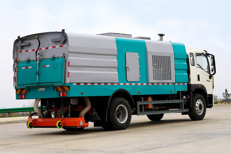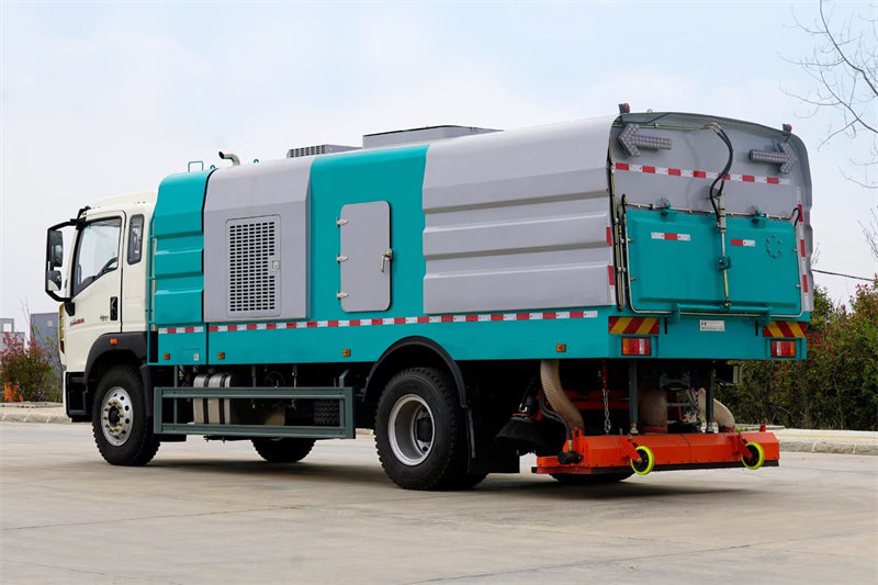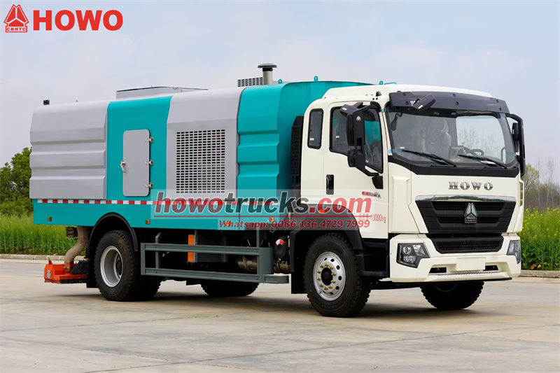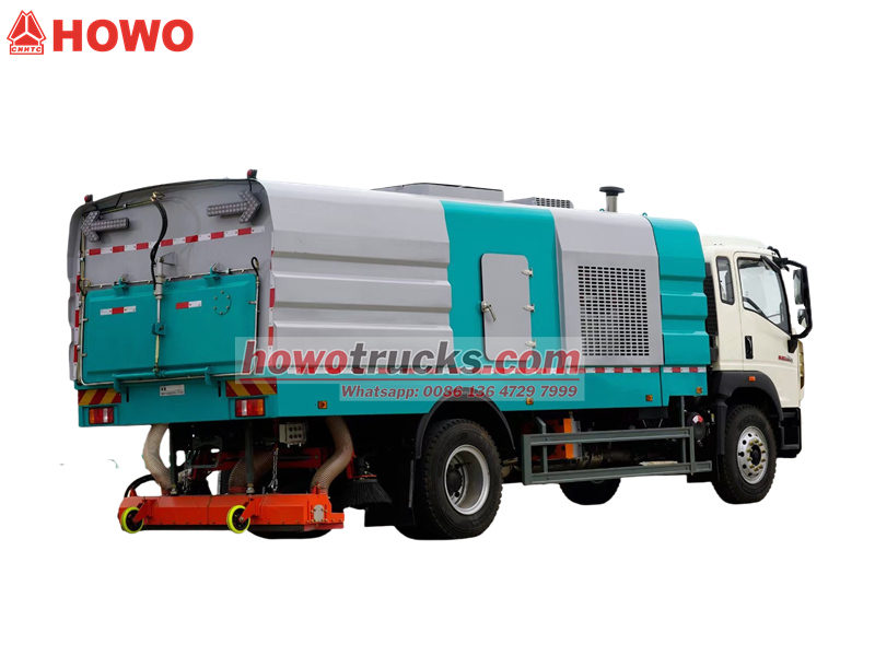 Підмітально-чистильна машина Howo 4x2 — це машина з потужною продуктивністю підмітання та ефективною роботою, що підходить для очищення міських вулиць, промислових парків та адміністративних будівель. Її пилозбірник об'ємом 5 кубічних м та резервуар для води об'ємом 4 кубічних м у поєднанні з корпусом підмітальної машини з нержавіючої сталі товщиною 4 мм забезпечують довговічність та ефективне очищення. Оснащена дизельним двигуном потужністю 300 к.с. та 10-ступінчастою коробкою передач HW, вона забезпечує потужний та плавний хід.