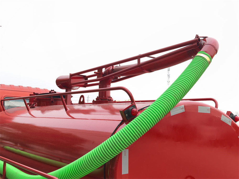 • Бак: Резервуар з вуглецевої сталі об'ємом 4 кубічні метри, ≥ Товщина 4 мм, оброблена антикорозійним та стійким до іржі покриттям для подовження терміну служби. Зверху встановлена 6-метрова висувна всмоктувальна штанга, що дозволяє працювати під різними кутами. Ззаду встановлено випускний клапан, що дозволяє здійснювати розвантаження під дією сили тяжіння або за допомогою стисненого повітря.