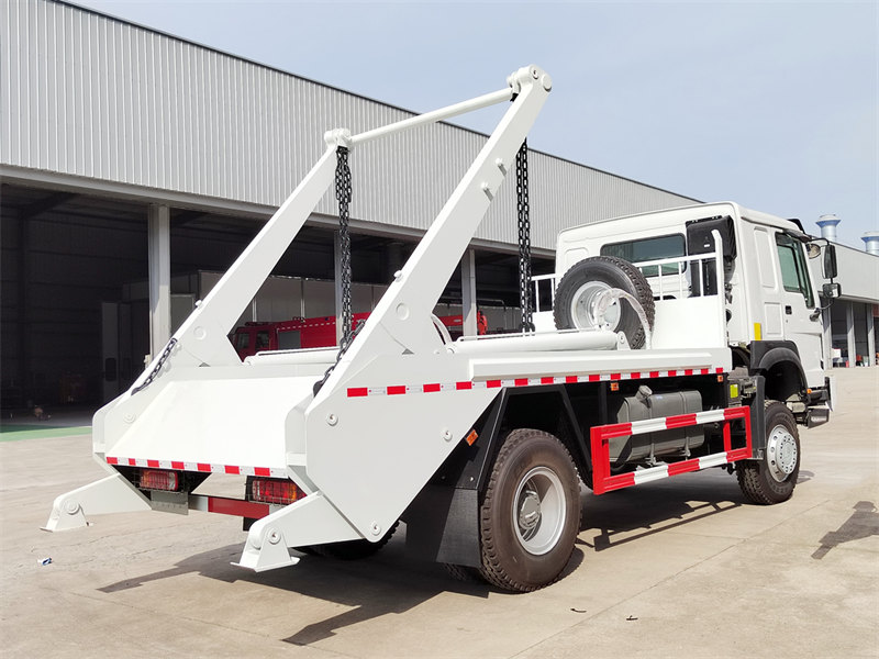 Сміттєвоз HOWO 4×4 з поворотним маневровим механізмом – це високопродуктивний спеціальний транспортний засіб, розроблений та виготовлений компанією CS TRUCKS. Побудований на повнопривідному шасі HOWO, він використовує гідравлічний механізм поворотного маневрового маневрування для автоматичного завантаження та розвантаження сміттєвих контейнерів. Його основна перевага полягає в інноваційній циклічній моделі роботи «один транспортний засіб, кілька контейнерів», яка значно покращує ефективність збору та перевезення відходів. Оснащений двигуном Sinotruk потужністю 266 к.с., вантажівка пропонує чудову всюдихідну мобільність та вантажопідйомність, що робить її придатною для складних дорожніх умов у містах, громадах та промислових парках. Завдяки потужній гідравлічній системі, що забезпечує вантажопідйомність понад 6 тонн, та сумісності зі стандартними сміттєвими контейнерами об'ємом 10 кубічних метрів, вона забезпечує ефективну та надійну роботу, що робить її ідеальним рішенням для сучасного транспортування відходів.