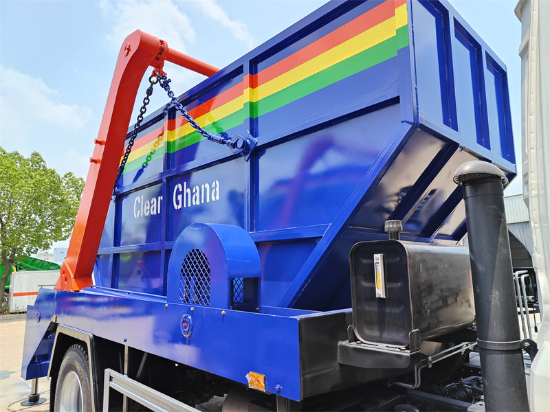 Сміттєвоз Howo 6x4 оснащений міцною платформою товщиною 8 мм, відповідними міцними поворотними важелями для підйому та опускання важких контейнерів. У задній частині платформи скіп-дека встановлено гідравлічний гак, який можна використовувати для блокування та розблокування контейнера, що дозволяє опускати контейнер на землю для збору сміття у фіксованому місці; також його можна використовувати для розвантаження сміття на сміттєзвалищі. Ручний гідравлічний регулювальний клапан та електричний блок керування обладнані для забезпечення більш ефективного та простого використання.
