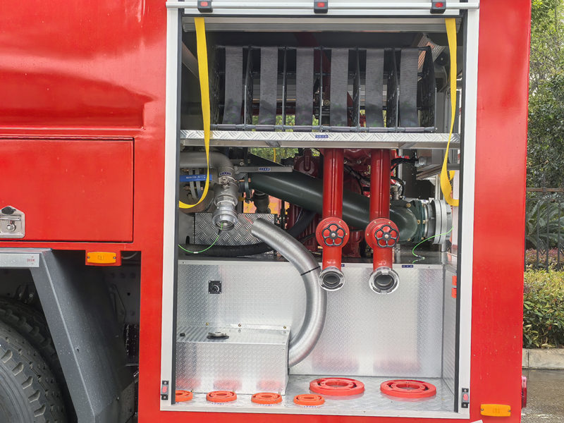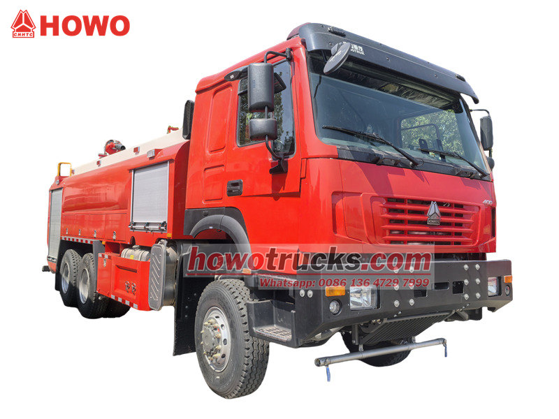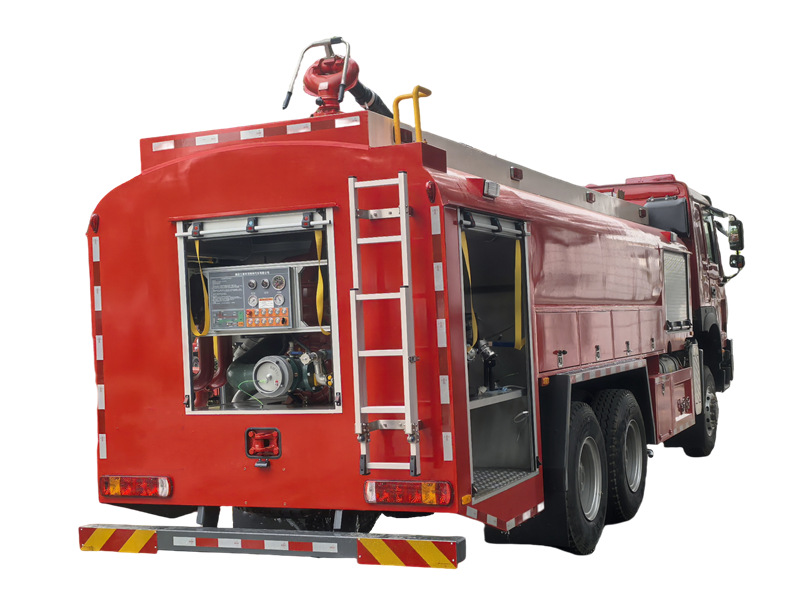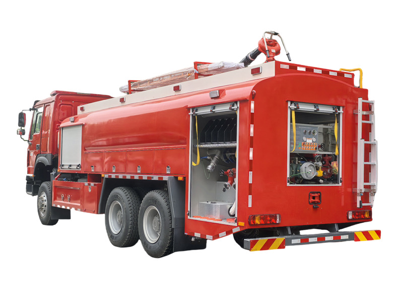 Пожежна машина HOWO 6×6 має резервуар для води об'ємом 8000 літрів та резервуар для піни з нержавіючої сталі об'ємом 2000 літрів. Вона оснащена пожежним насосом нормального тиску CB10/60 та пожежною гарматою PL48 з дальністю гасіння понад 70 метрів, що дозволяє їй гасити пожежі під час руху. Планування насосного відділення є розумним. У відсіку обладнання використовуються рулонні двері з алюмінієвого сплаву та модульна стаціонарна конструкція. Пожежна вантажівка HOWO позашляховика поєднує високоміцну конструкцію, ефективну систему пожежогасіння та зручний дизайн. Він вирізняється видатними показниками надійності, експлуатаційної ефективності та адаптивності до навколишнього середовища.