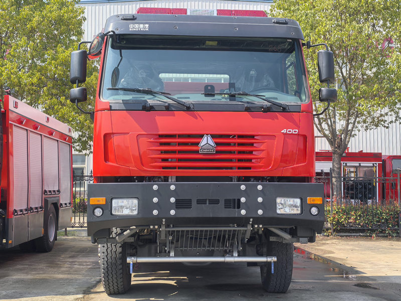 Пожежна машина HOWO 6×6 позашляхового типу — це важка пожежно-рятувальна машина, спеціально розроблена для складних пожежних умов. Побудована на позашляховому шасі HOWO 6×6 та оснащена двигуном потужністю 371 кінську силу, вона має виняткову мобільність та здатність проходити складну місцевість, що робить її придатною для швидкого гасіння пожеж у нафтохімічних, лісових та міських пожежних ситуаціях. Завдяки наявності великого резервуара для рідини (8000 л води + 2000 л піни), високопродуктивного пожежного насоса (60 л/с) та далекобійного пожежного лафета (≥70 метрів), вона забезпечує потужні операції під час руху. Цей автомобіль є комплексним, високонадійним та ефективним сучасним пожежогасінням.