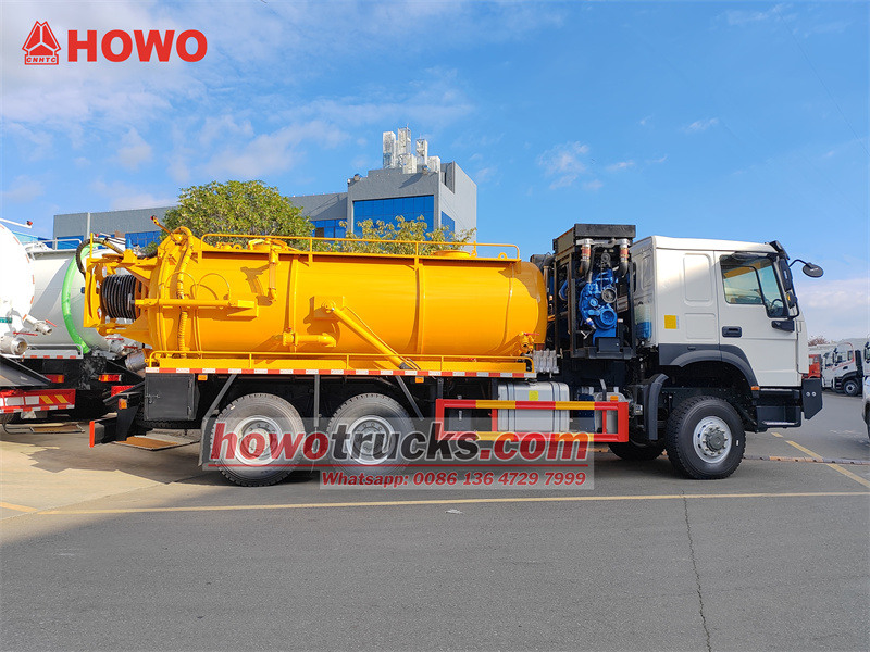 Комбінований днопоглиблювальний транспортний засіб HOWO 6X6 12 куб. м. модифікований на базі повнопривідного шасі Sinotruk HOWO 6x6. Він має напівкабіну, колісну базу 4300 мм + 1400 мм, оснащений двигуном Weichai WP10H400E62 Euro 6 потужністю 400 к.с. та 10-ступінчастою коробкою передач HW19710. Транспортний засіб оснащений резервуаром для стічних вод об'ємом 10 куб. м та резервуаром для очисної води об'ємом 2 куб. м, кожен з яких має окремі відсіки.