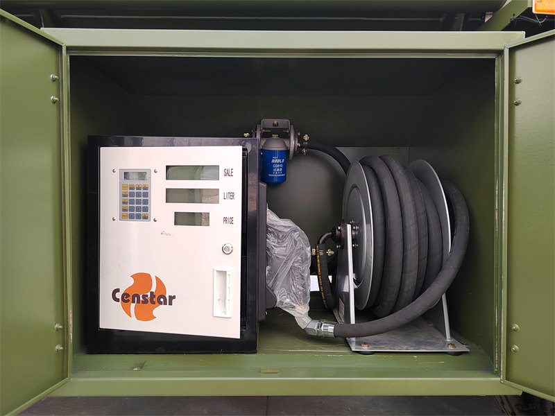 The Паливозаправник HOWO 6×6 Має місткість бака 18 000 літрів і виготовлений з вуглецевої сталі товщиною 4 мм з внутрішнім антикорозійним покриттям для подовження терміну служби. Бак розділений на два незалежні відсіки, що дозволяє одночасне транспортування різних типів палива для підвищення експлуатаційної гнучкості. Він оснащений високопродуктивним паливним насосом продуктивністю 60 м³/год та паливним колонкою Censtar продуктивністю 60 л/хв, а також 15-метровим котушкою для шланга, що дозволяє швидко заправляти паливо. Завдяки видатним позашляховим характеристикам та відповідності стандарту викидів Euro III, цей автомобіль користується великою популярністю серед африканських клієнтів, особливо для розвезення палива в суворих умовах, таких як нафтові родовища та гірничодобувні райони.