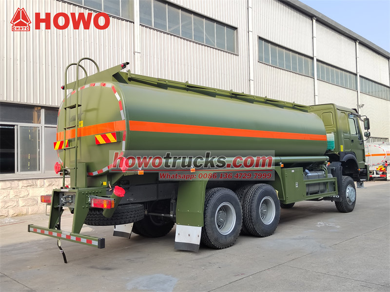 Паливний бензовоз HOWO 6×6 розроблений на базі повнопривідного шасі SINOTRUK HOWO 6×6, місткість паливного бензобака становить до 18000 літрів, виготовлений з високоякісної вуглецевої сталі з внутрішньою антикорозійною обробкою для подовження терміну служби. Бак розділений на два відсіки, що дозволяє зберігати та транспортувати різні види нафтопродуктів. Завдяки відмінним позашляховим характеристикам, автомобіль може адаптуватися до суворих дорожніх умов, таких як бруд та гравій.