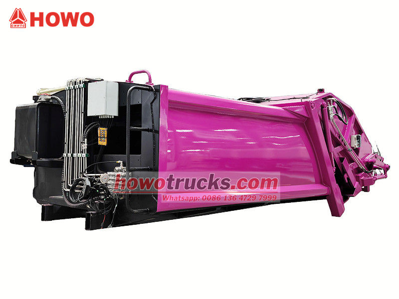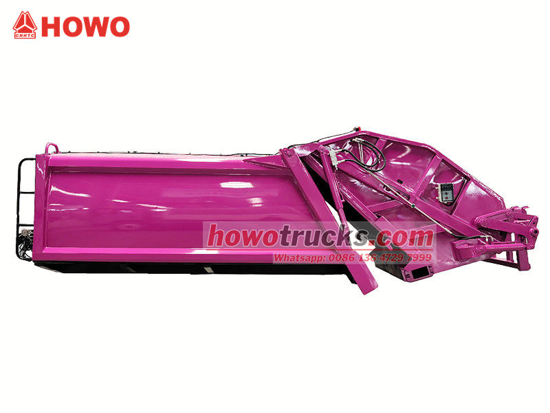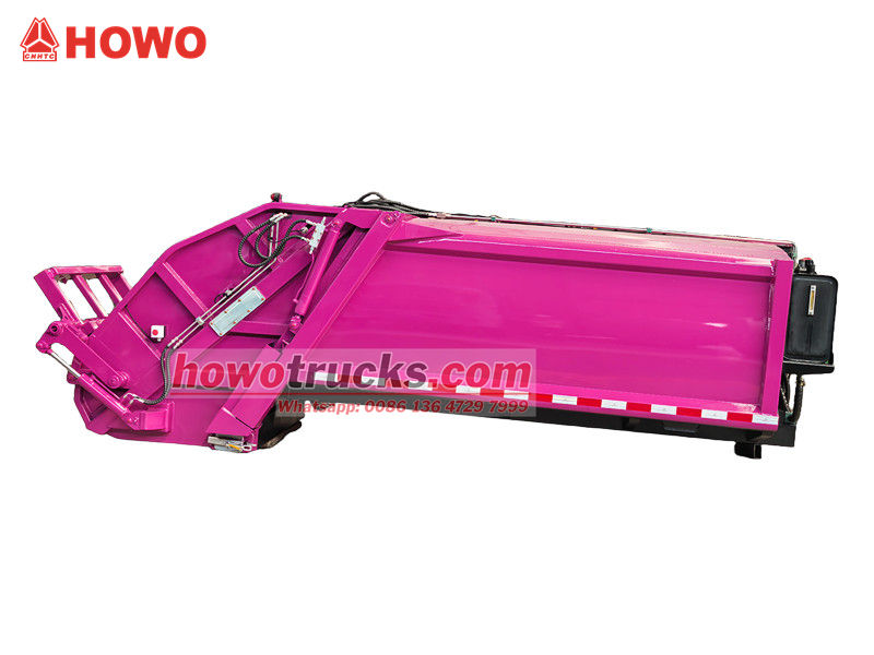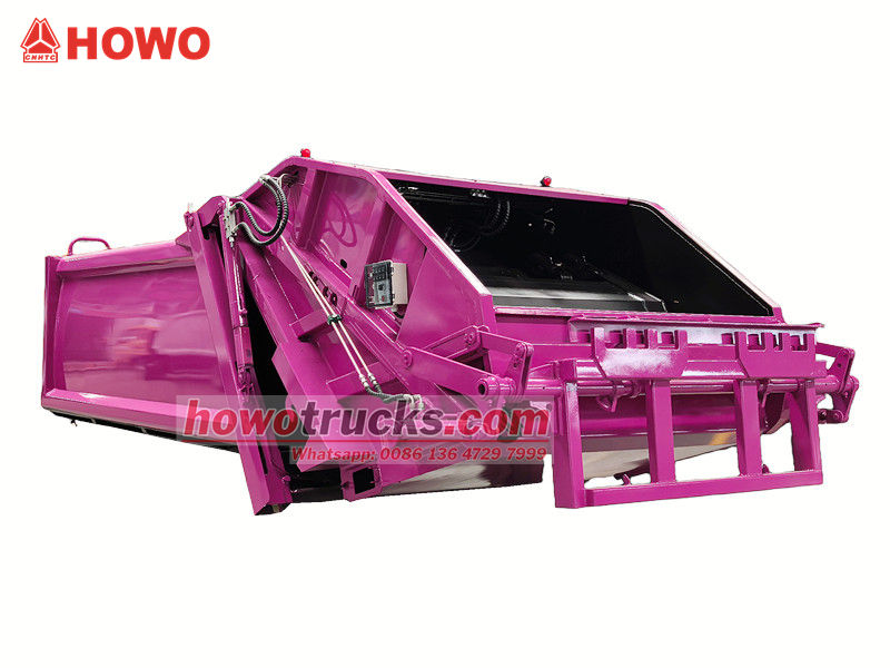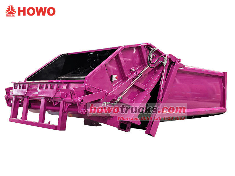 PLC control systemНадбудова сміттєвоза Howo 8 CBM складається зі сміттєвого контейнера, навантажувача, штовхача, компресійної плити та гідравлічної системи. Контейнер зварений з високоміцних, стійких до корозії сталевих пластин, що створює герметичне ущільнення для запобігання витоку стічних вод.