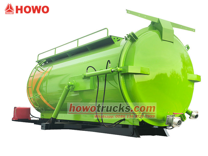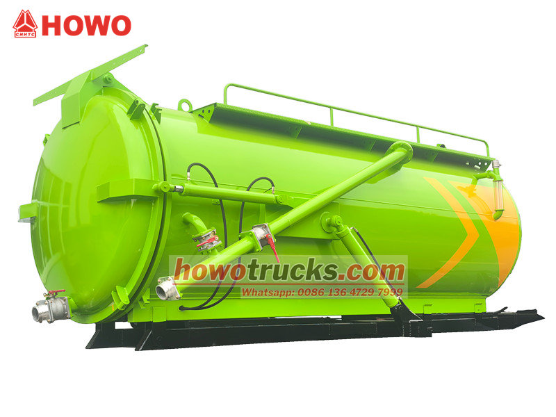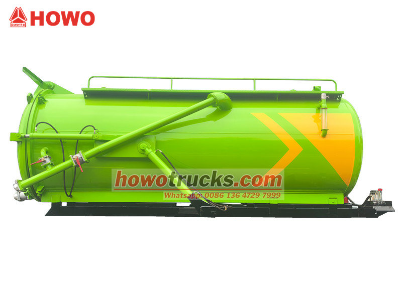 Кузов автоцистерни Howo 8cbm (також називається комплектом вантажівки з вакуумним насосом 8cbm, верхнім кузовом автоцистерни об'ємом 8000 літрів, комплектом вакуумного відсмоктувача стічних вод 8cbm, комплектом верхнього кузова автоцистерни для утилізації стічних вод, надбудовою автоцистерни 8cbm, комплектом автоцистерни для вакуумного насоса з шламом, комплектом верхнього кузова автоцистерни для вакуумного відсмоктування тощо) буде використовуватися для монтажу на шасі для очищення та збору рідини, такої як брудна вода. Він підходить для очищення каналізації, вигрібних ям, клоаків тощо.