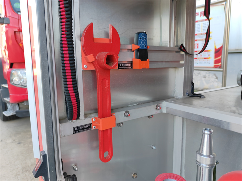 3. Нижній ящик для обладнання: Розташований під резервуаром, він пропонує високий рівень використання простору. Він оснащений рулонними дверима з алюмінієвого сплаву, які легко відкриваються, водонепроникні та пилонепроникні. У ньому розміщується різне пожежогасильне обладнання: