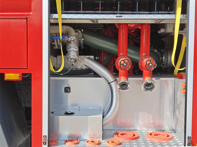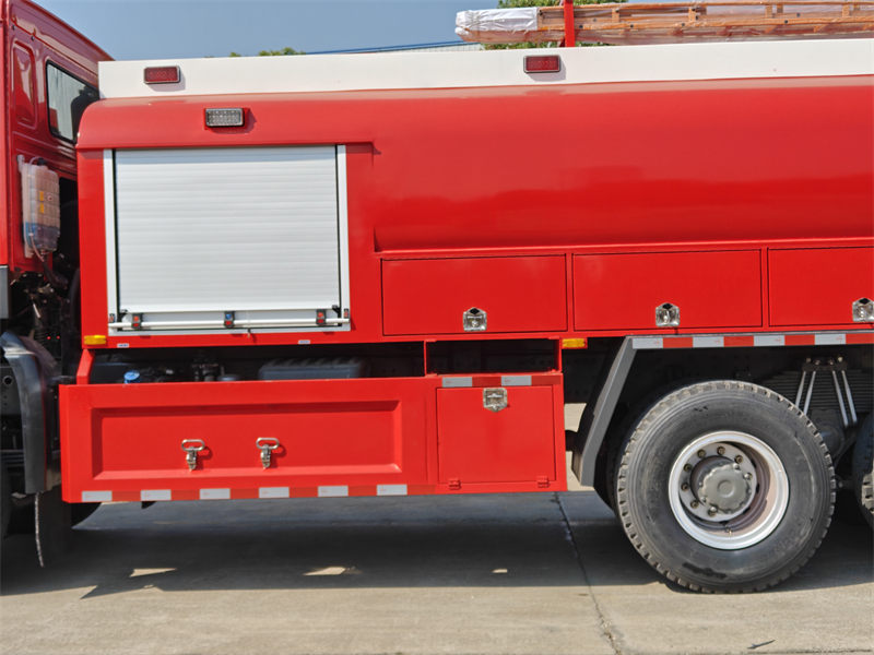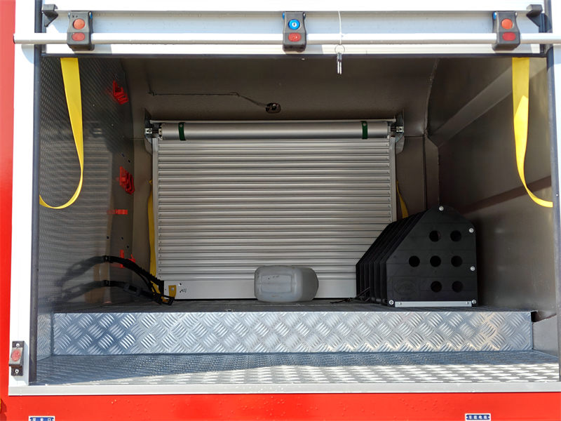 Відсік для обладнання, виготовлений з алюмінієвого сплаву, не тільки легкий, але й ніколи не іржавіє, що значно подовжує термін його служби. Бак для рідини, виготовлений з композитного матеріалу PP, легкий і міцний. Кожна деталь демонструє вишукану майстерність, від рулонних воріт з водостічним жолобом до педалі з протиковзким покриттям, що відображає ретельне врахування безпеки та зручності пожежників.