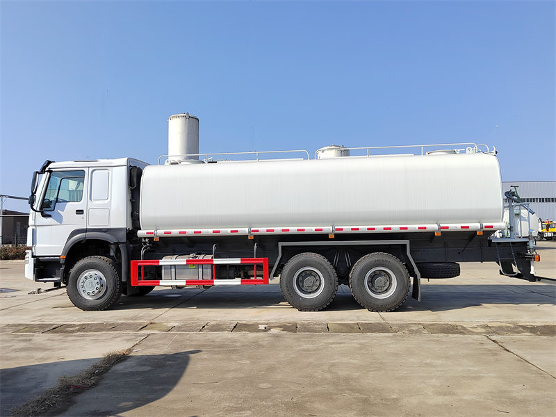 Завдяки великому резервуару для води та високоякісним матеріалам, вантажівка Howo для розбризкування води може похвалитися місткістю бака понад 20 000 літрів, що задовольняє потреби масштабних операцій з розпилення води, зменшує часте поповнення запасів води та підвищує експлуатаційну ефективність. Резервуар для води виготовлений з високоякісної вуглецевої сталі (Q235) та має овальний корпус. Він має переваги високої міцності та стійкості до корозії, що забезпечує термін служби резервуара для води.