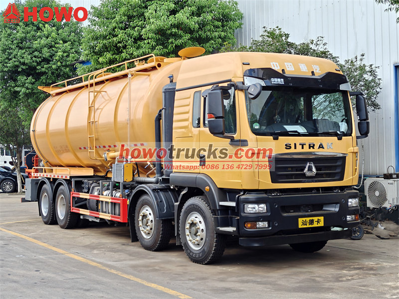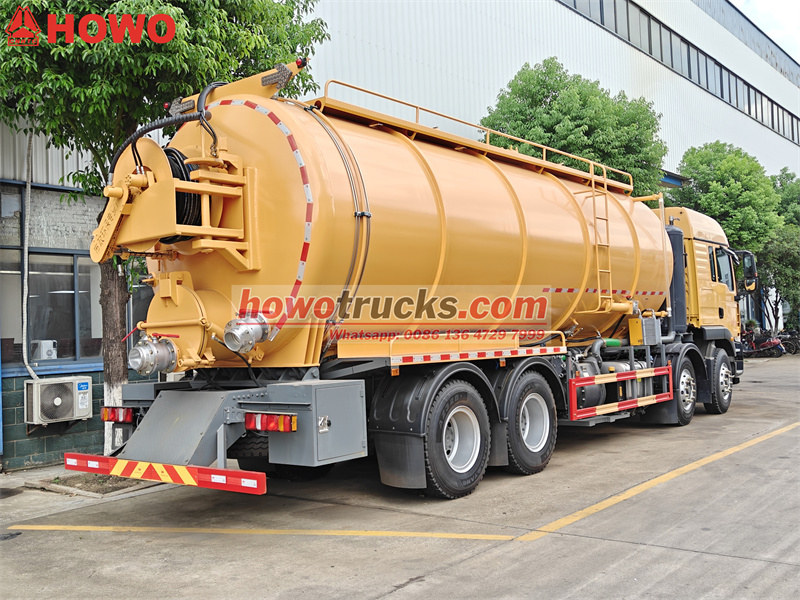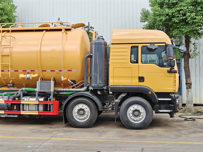 18000KG*2У сфері муніципальної санітарії, Вантажівка-цистерна для важкої прибиральної вакуумної каналізації Howo 8x4 став еталоном галузі завдяки своїй чудовій продуктивності та багатофункціональному дизайну. Оснащений потужним двигуном серії Weichai з максимальною потужністю 350 к.с., у поєднанні з насосом для очищення високого тиску (тиск 16-19 МПа) та системою відкачування стічних вод, він може швидко очищати каналізацію, септики та інші складні місця. Об'єм резервуара для стічних вод становить до 20 кубічних метрів, що забезпечує велику місткість та надзвичайно високу ефективність за одну операцію. Він має модульну конструкцію та підтримує додаткові передні барабани, датчики рівня рідини та спринклери для задоволення різноманітних потреб.