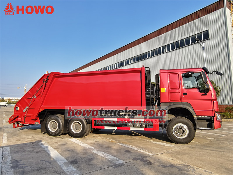 Важкий сміттєвоз Sinotruk HOWO із заднім навантажувачем - це спеціально розроблений та виготовлений важкий сміттєвоз, побудований на шасі важкої вантажівки HOWO 6×4, оснащений дизельним двигуном WEICHAI EURO 2 моделі WP10.380E22 потужністю 280 кВт/380 к.с., що підходить для африканського ринку. Важка сміттєвозка HOWO оснащена кузовом-цистерною-компактором об'ємом 20 куб. м, виготовленим з міжнародного матеріалу St52, що еквівалентно матеріалу Q355, товщиною боковин та підлоги 5 мм. Також може бути виготовлена з шведської сталі HARDOX як матеріалу, що робить її більш міцною та надійною. Задній нахил для заднього навантажувача HOWO - це контейнери об'ємом 240 л та 1100 л, що підходить для вимог ринку Ефіопії.