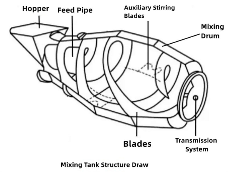 2. Науковий дизайн резервуара:Марганцева сталь Q355 з подвійною логарифмічною спіральною кривою забезпечує однорідність бетону, мінімізує залишки та зменшує втрати матеріалу.