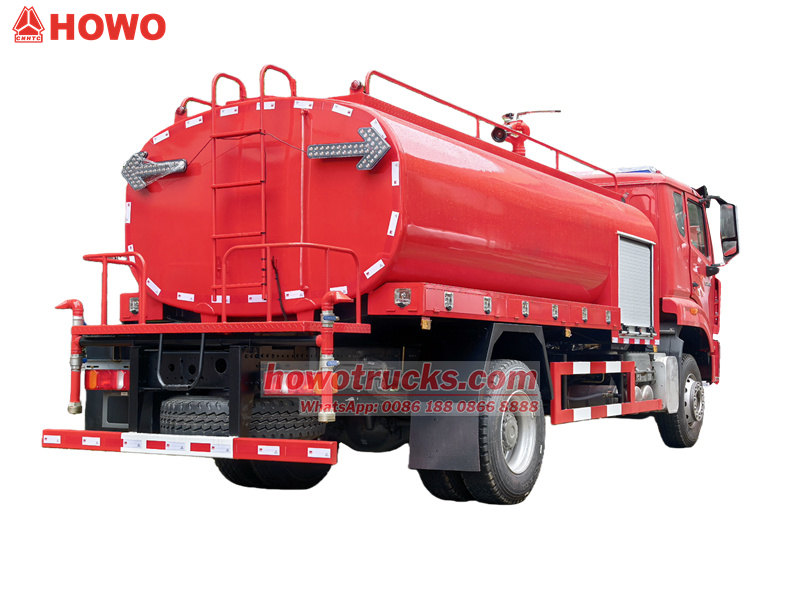 HOWONXПожежна цистерна для води – це професійний пожежний автомобіль, призначений для реагування на надзвичайні пожежні ситуації. Він оснащений вантажівкою HOWO. NX важкийшасі та може вмістити 3 пасажирів. Оснащений двигуном WP10.290E32, вихідна потужність досягає 290 к.с., що задовольняє потреби HOWO в енергії NX fгнів розбризкувача водивантажівка. Пожежна машина Howo з водяним фургоном відповідає стандартам EURO 3стандарти викидів, а викиди чисті та екологічно безпечні. Оснащений 12.00R20шин для забезпечення стабільного водіння в екстрених ситуаціях. Що стосується протипожежних характеристик, Howo NXПожежна машина має резервуар для води місткістю12000 л. Він оснащений CB10/60 пожежний насос та PЛ32 вогнева гармата, і може забезпечити 36 л/с при тиску 1,0 МПа wз номінальною витратою 32 л/с при 2,0 МПа та діапазоном понад 55 метрів, це забезпечує ефективні операції з пожежогасіння.