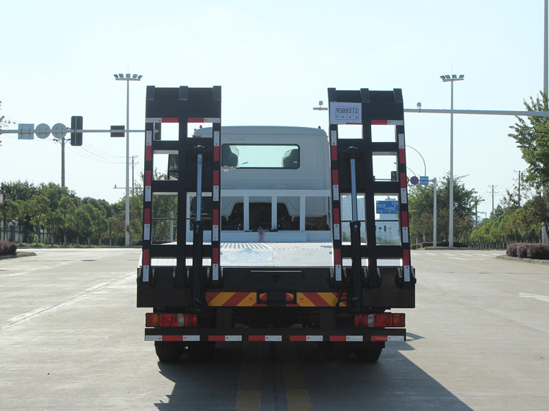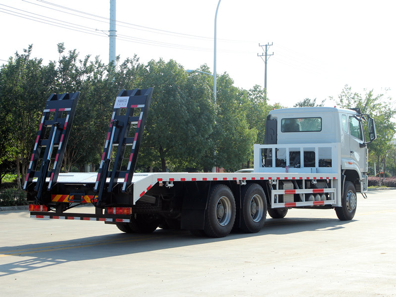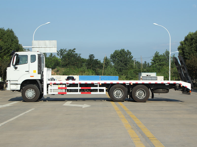 Це Самозавантажувальна вантажівка HOWO NX оснащений професійними та потужними функціями. Кузов виготовлений з 8-міліметрових сталевих пластин з протиковзким малюнком, розміром 8600×2500 мм, спеціально розроблених для безпечного транспортування екскаваторів середнього розміру та іншого обладнання. Задня частина транспортного засобу оснащена двома 2-метровими гідравлічними пандусами для зручного завантаження та розвантаження техніки. Крім того, два передні підйомні гідравлічні аутригери, кожен вантажопідйомністю 20 тонн, значно підвищують стійкість під час роботи на нерівній місцевості. Спереду також встановлена 4-тонна гідравлічна лебідка, яку можна використовувати для евакуації або кріплення обладнання, що повністю задовольняє вимоги філіппінських користувачів до універсальності та надійності.