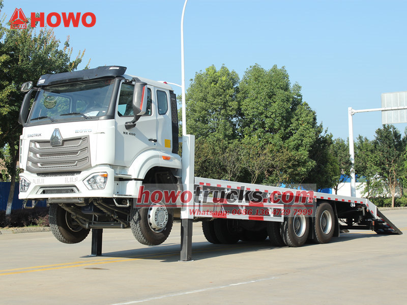 Самоскид HOWO NX – це професійний транспортний засіб, спеціально розроблений для перевезення великої будівельної техніки. Побудований на шасі HOWO 6×4, він оснащений двигуном Weichai високого тиску Common Rail потужністю 400 к.с., що забезпечує надійну продуктивність з високою ефективністю та дотриманням екологічних норм. Транспортний засіб оснащений протиковзкою платформою 8600×2500 мм, двома 20-тонними передніми гідравлічними виносними опорами та 4-тонною гідравлічною лебідкою, що утворює безпечну та надійну систему завантаження та розвантаження, яка повністю відповідає потребам транспортування та експлуатації важких екскаваторів та іншого обладнання на місці.