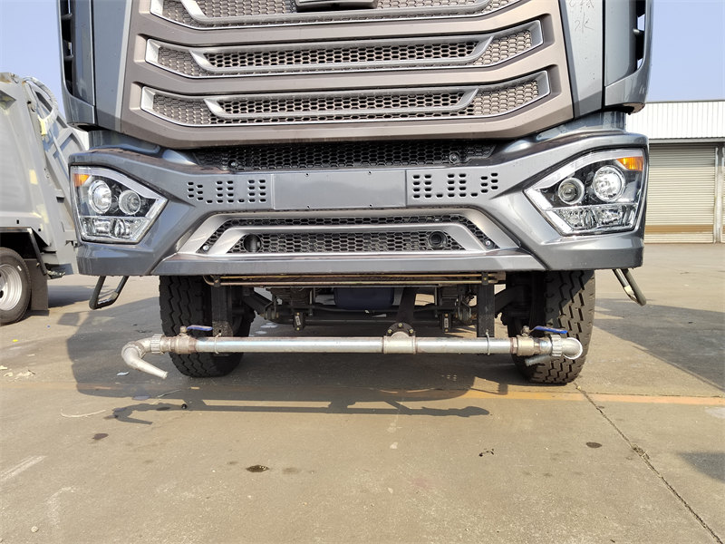 The Водоочисник HOWO NX оснащений резервуаром для води з вуглецевої сталі об'ємом 20 м³, що відповідає потребам зберігання води великої місткості. Водяний насос моделі 80QZ60/90S має витрату 60 м³/год та напір 90 метрів, зі швидким самовсмоктуванням для ефективного водопостачання. Система спринклерів включає передні, задні та бічні розпилювальні форсунки (ширина розпилення ≥14 метрів) та водяну гармату високого тиску (дальність ≥28 метрів), що підтримує різні режими роботи, такі як миття доріг та обприскування на великі відстані. Він підходить для вимог міської санітарії та екологічної інженерії.