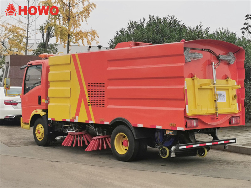 Легконавантажна підмітально-прибиральна машина HOWO 4x2 з кріпленням на вантажівці, оснащена дизельним двигуном китайської марки YUNNEI моделі YN4102QBZL, потужністю 116 к.с. з об'ємом викидів 3760 куб.см, що відповідає вимогам африканського ринку щодо вихлопних газів. 6-ступінчаста механічна коробка передач моделі WLY з 6 передачами вперед і 1 передачею назад, зручна для щоденного використання. Стандартна колісна база становить 3360 мм, що поєднується з шинами 7.00R16, що дуже підходить для щоденної роботи та забезпечує високу міцність. Підмітально-прибиральні машини HOWO оснащені 1000-літровим баком для води та 4000-літровим баком для пилу, всі виготовлені з нержавіючої сталі №304, а також вантажівка HOWO оснащена електричним блоком керування PLC у кабіні, що робить всю роботу однією кнопкою, безпечною та зручною.