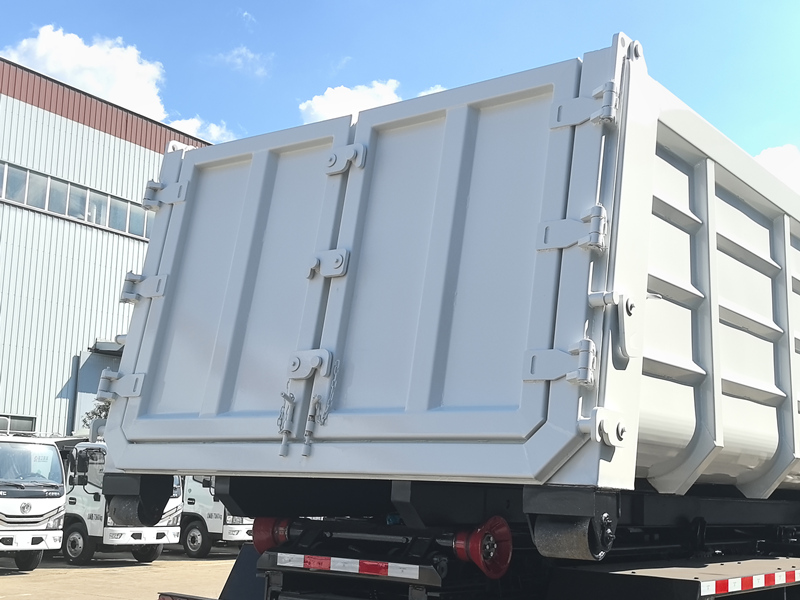 • Конструкція ущільнення: Задній борт оснащений гумовим ущільнювачем та гідравлічним блокувальним пристроєм для запобігання протіканню та запаху під час транспортування, що відповідає вимогам охорони навколишнього середовища.