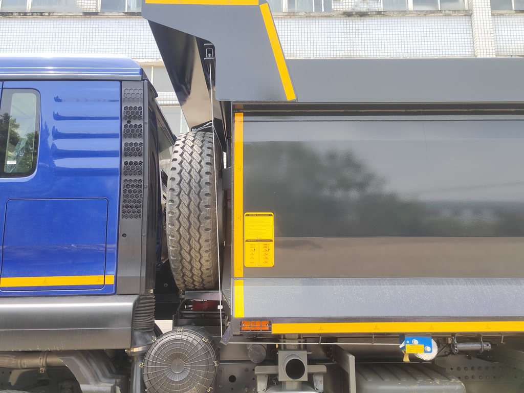 Він оснащений дизельним двигуном WP10.380E22 потужністю 380 к.с. та коробкою передач HW19710, з колісною базою 3200+1400 мм. Це міцний та універсальний самоскид, каретка має геніальну конструкцію. Завдяки гідравлічному підйомному пристрою він може здійснювати швидке та автоматичне скидання вантажів, будь то пісок, вугілля чи земля, їх можна ефективно розвантажувати, значно економлячи робочу силу та час.