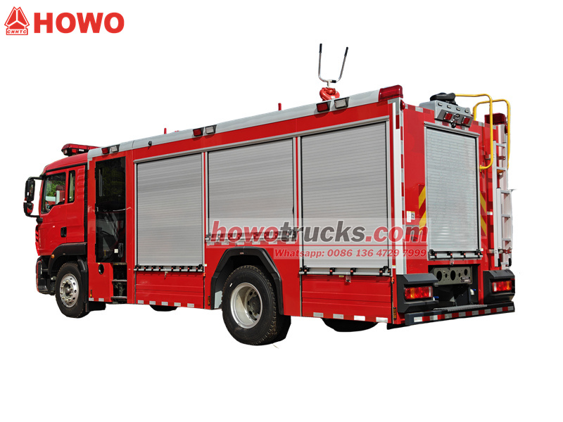 The 5 куб. м вогонь водавантажівка побудована на міцній основі Хауо Кабіна в Техасішасі. Воно поєднує в собі чудову потужність та екологічно чисті викиди. Висока потужність двигуна WP.10.340E32, він може кинути виклик будь-яким складним дорогам. Цеs оснащений 4000Lвеликий резервуар для води великої місткості та професійний пожежний насос. Він має велику дальність розпилення та панель керування з можливістю вибору мови. Водночас він пропонує різноманітні додаткові конфігурації для задоволення різних потреб.