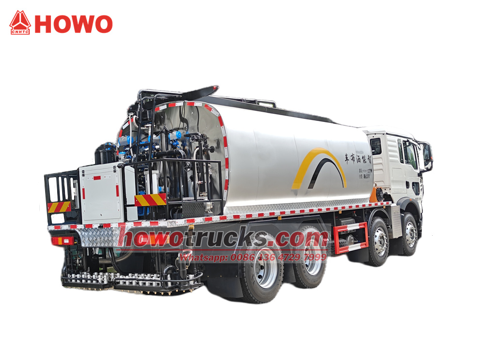 Розкидач асфальту HOWO 8x4 об'ємом 18 кубічних метрів модифікований на базі шасі з кабіною HOWO TX-W 8X4. Він має колісну базу 1800+3800+1350 мм, оснащений двигуном MC07H.35-60 та коробкою передач HW13709XSTC2. Верхня частина являє собою асфальтовий резервуар об'ємом 18 кубічних метрів, який можна завантажувати емульгованим та гарячим асфальтом. Він оснащений інтелектуальним насосом гарячого масла з повітряним охолодженням RY40-25-160 та 36 асфальтовими форсунками ззаду. Ширина розпилення становить 6 м, а об'єм розпилення — 0,2-3 кг/м².²Також він має імпортний дизельний пальник (теплотворна здатність: 10×10⁴ккал/год), автоматичний підігрів термомасла та інтелектуальне комп'ютерне керування в кабіні (Siemens, Німеччина).