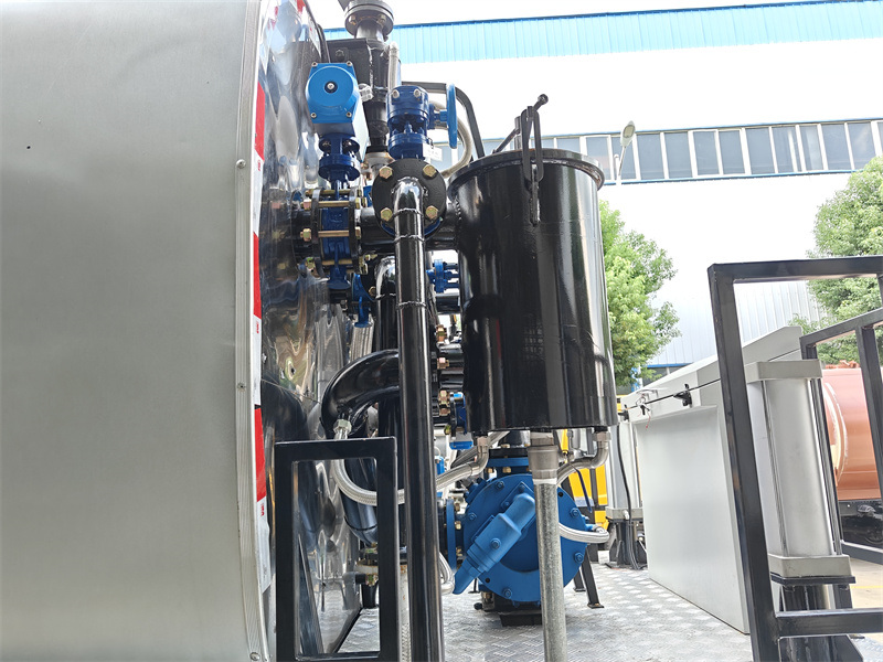 2.Великий резервуар: Асфальтовий резервуар об'ємом 18 кубічних метрів сумісний як з емульгованим, так і з гарячим асфальтом, забезпечуючи теплоізоляцію та довговічність.