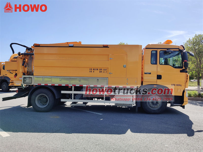 Комбінований водоструминний транспортний засіб HOWO 4x2 11 куб. м побудований на півторарядному шасі HOWO TX 2280, що поєднує комфорт та маневреність, що робить його придатним для міських та складних дорожніх робіт.