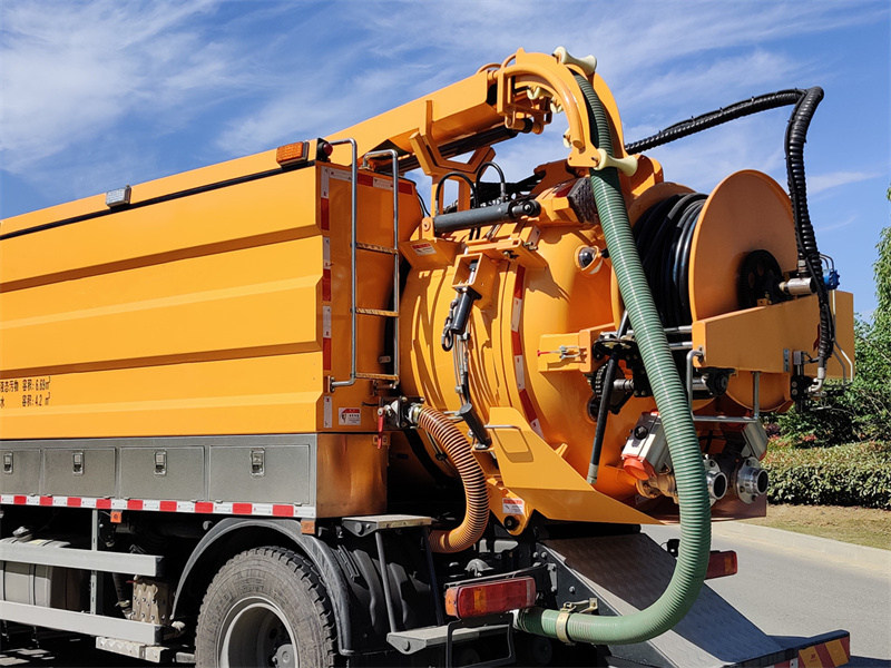 2. Система очищення високого тиску: Під час роботи відбір потужності шасі приводить у дію насос високого тиску 3N2-SZ, який подає чисту воду з резервуара для чистої води та випускає її через форсунки барабана для промивання внутрішніх стінок труби. Високошвидкісний потік води створює потужну ударну силу, видаляючи стійкі плями.