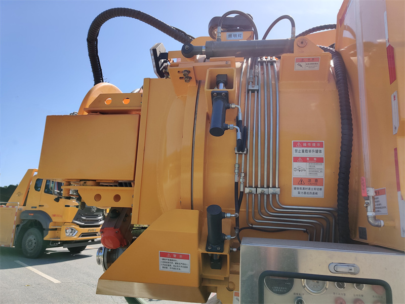 1. Система вакуумного відсмоктування: Вакуумний насос Jurop PVT400 створює негативний тиск, який потім за допомогою всмоктувального рукава всмоктується в резервуар з вуглецевої сталі об'ємом 6,7 кубічних метрів. На верхній частині резервуара встановлено переливний клапан, який автоматично спрацьовує при переповненні та закриває всмоктувальний отвір, щоб запобігти зворотному потоку. Всмоктувальний рукав гідравлічно регулюється для підйому, втягування та обертання, що дозволяє його використовувати в різних робочих положеннях.