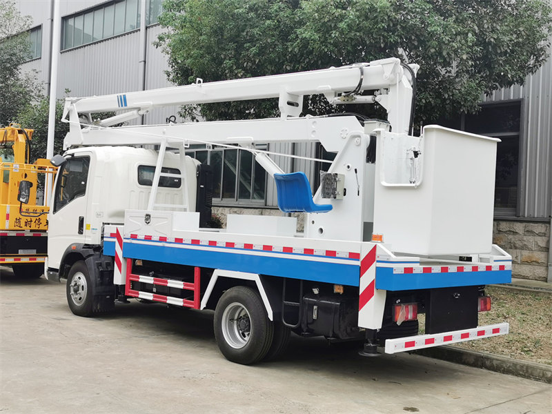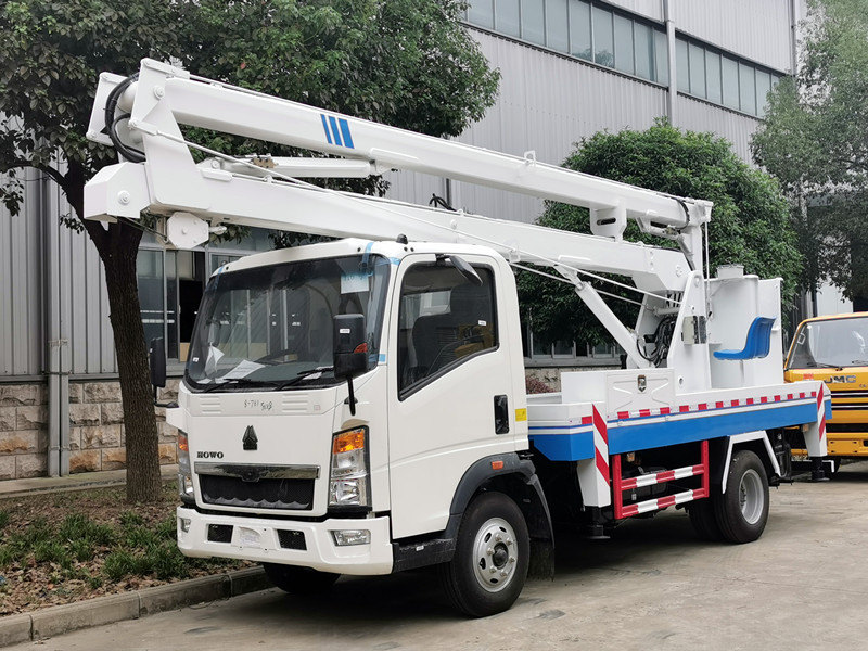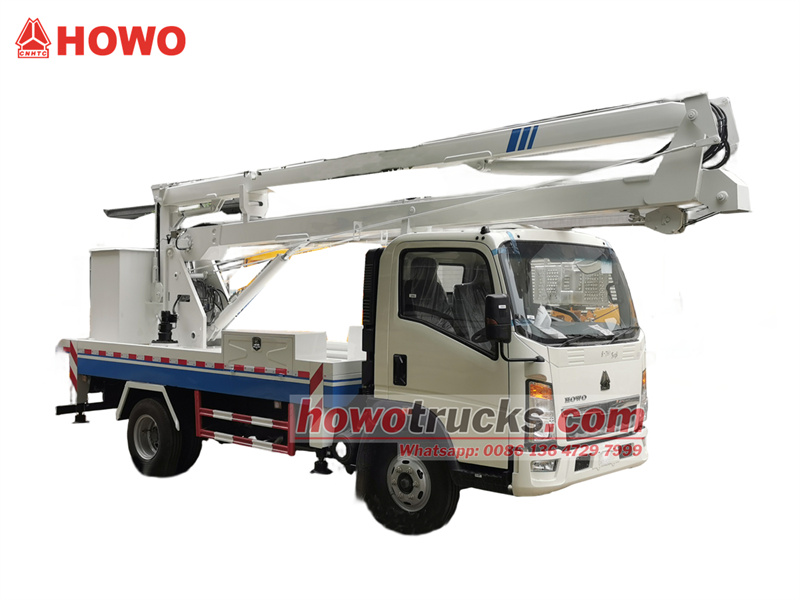 350016-метрова вантажівка-платформа HOWO — це підйомник із правостороннім кермом та складною стрілою, спеціально розроблений для кенійського ринку, з максимальною робочою висотою 16 метрів. Побудований на легковантажному шасі SINOTRUK HOWO RHD та оснащений дизельним двигуном Yunnei потужністю 116 к.с., він оснащений трисекційною складною конструкцією стріли та гідравлічними аутригерами H-типу, що забезпечують повне обертання на 360°. Робочий ківш виготовлений зі скловолокна та має номінальну вантажопідйомність 200 кг. Крім того, вантажівка також оснащена системою лебідки з гаком вантажопідйомністю 1000 кг.