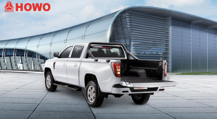 Пікап Howo 4x4, це комерційна повнопривідна версія Zunhao S6 4x4 2024 року, 5645.×1895 рік×Розміри 1890 мм, колісна база 3470 мм, дворядна кабіна, автоматична 8-ступінчаста коробка передач, великий кольоровий екран центрального керування, радар/зображення заднього виду, оснащений двигуном Weichai WP2HQ190E61 потужністю 190 кінських сил, рівень викидів Euro 6 2L, задній вантажний кузов, розміри 1800x1520x530 мм, корисне навантаження 495 кг.